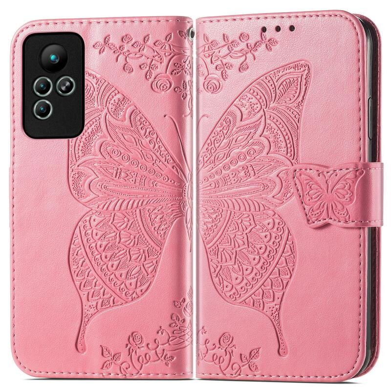 Θήκη τηλεφώνου από δέρμα με ανάγλυφο σχέδιο πεταλούδας και λουλουδιών για Infinix Note 11 (Μπλε)