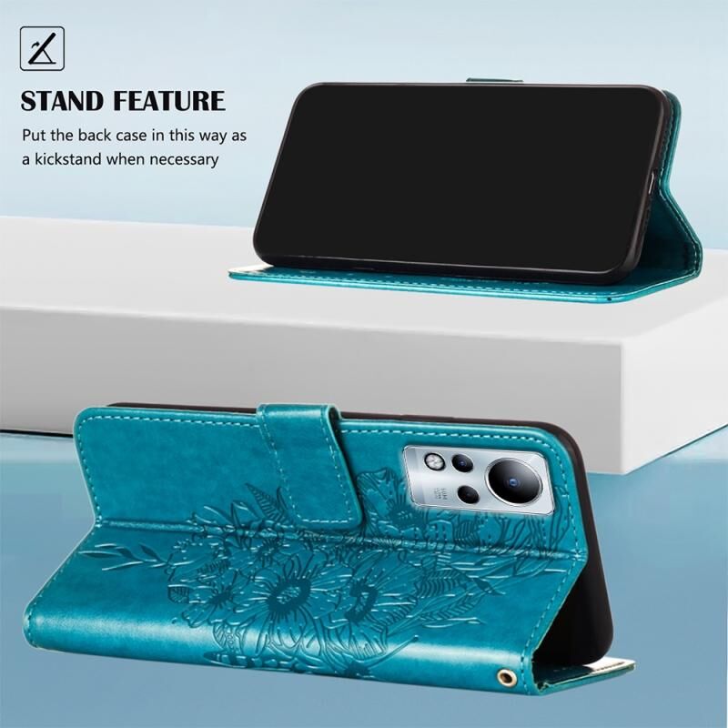 Θήκη τηλεφώνου από δέρμα με ανάγλυφο σχέδιο πεταλούδας για Infinix Note 11 (Γκρι)