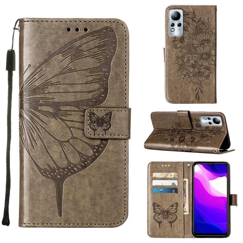 Θήκη τηλεφώνου από δέρμα με ανάγλυφο σχέδιο πεταλούδας για Infinix Note 11 (Γκρι)