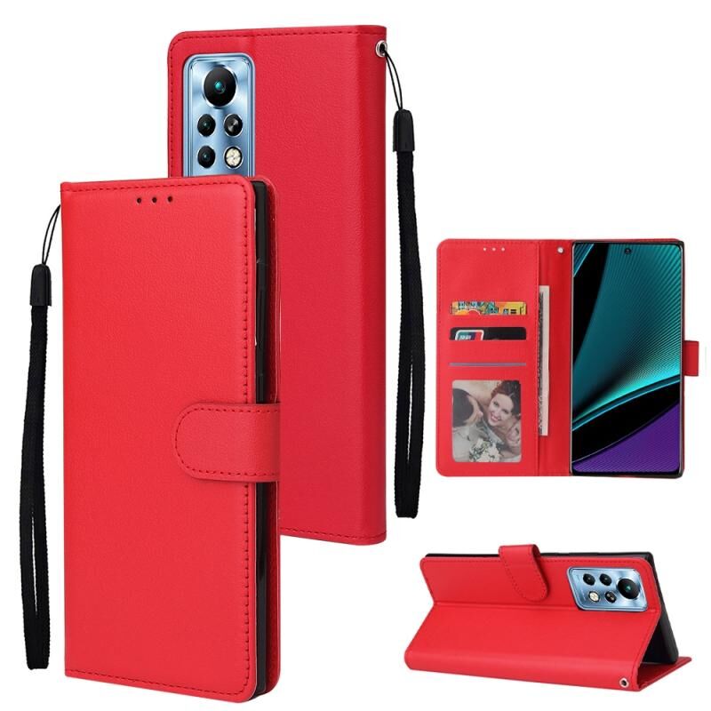 Για το Infinix Note 11 Pro Πολυλειτουργική οριζόντια δερμάτινη θήκη με τρεις υποδοχές για κάρτες (κόκκινο)