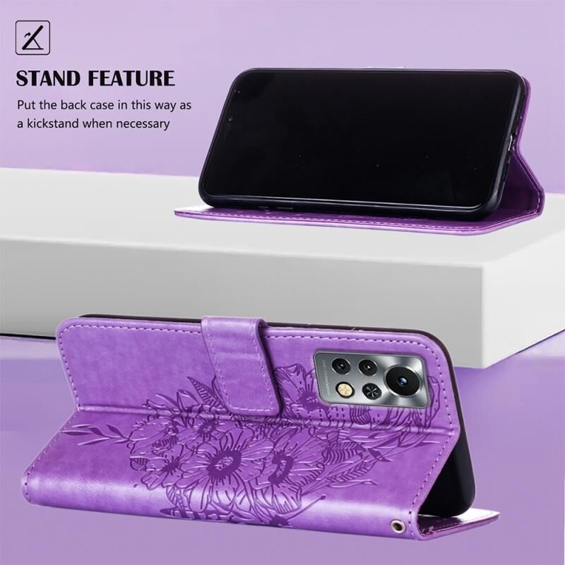 Θήκη τηλεφώνου από δέρμα με ανάγλυφο σχέδιο πεταλούδας για Infinix Note 11S / Note 11 Pro (Γκρι)