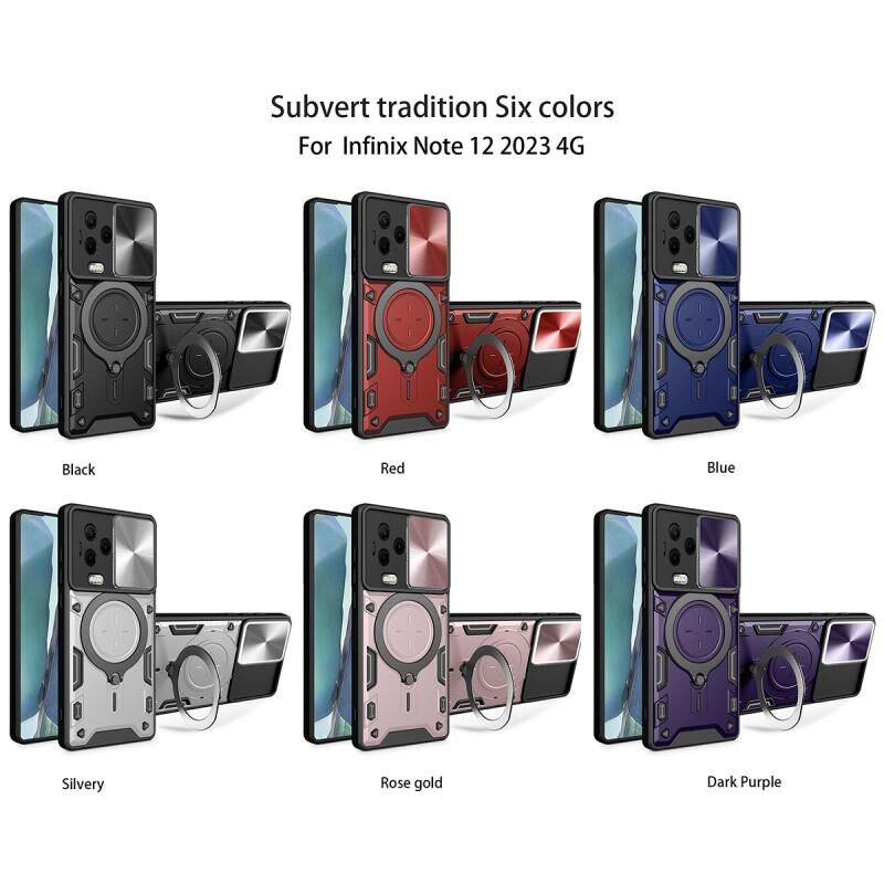 Θήκη τηλεφώνου για Infinix Note 12 4G με υφή CD, συρόμενο προστατευτικό κάμερας Camshield και μαγνητική βάση (Ροζ)