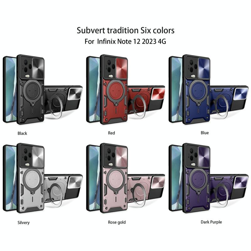 Θήκη τηλεφώνου για Infinix Note 12 4G με υφή CD, συρόμενο προστατευτικό κάμερας Camshield και μαγνητική βάση (Κόκκινο)