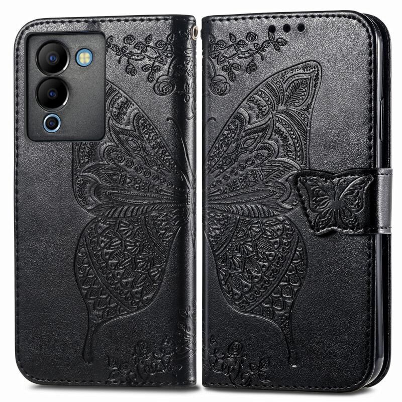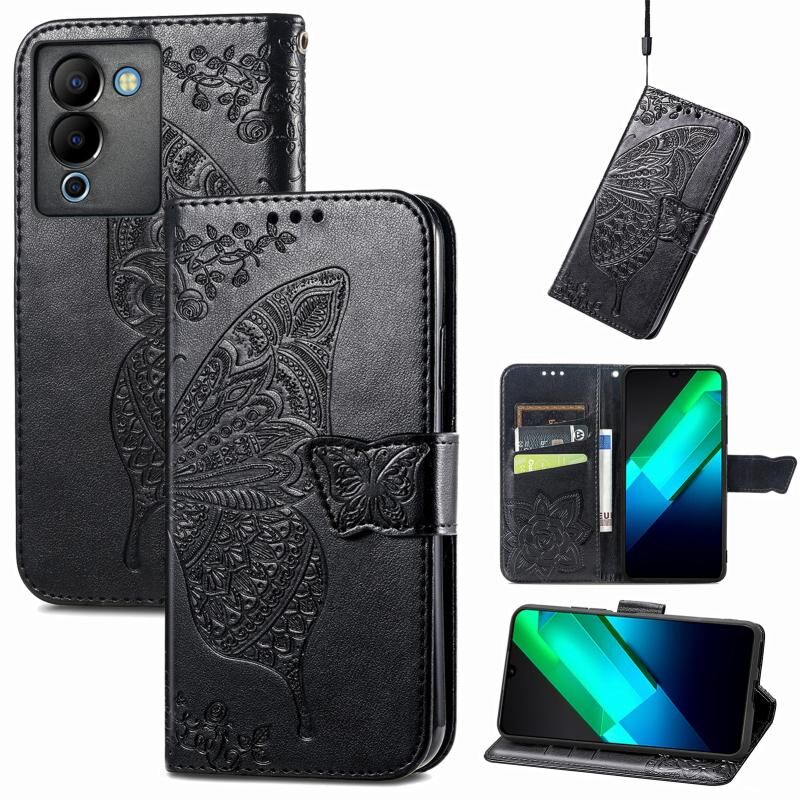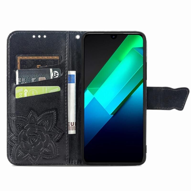 Θήκη τηλεφώνου από δέρμα με ανάγλυφο σχέδιο πεταλούδας και λουλουδιών για Infinix Note 12 G96 (Χρυσό Ρόδι)