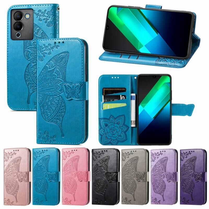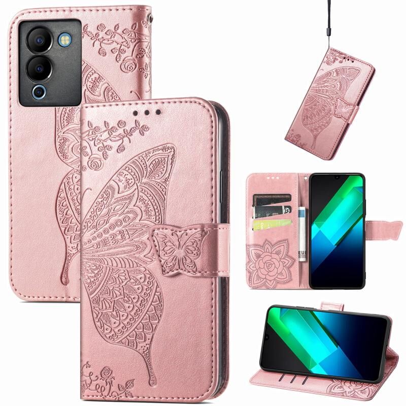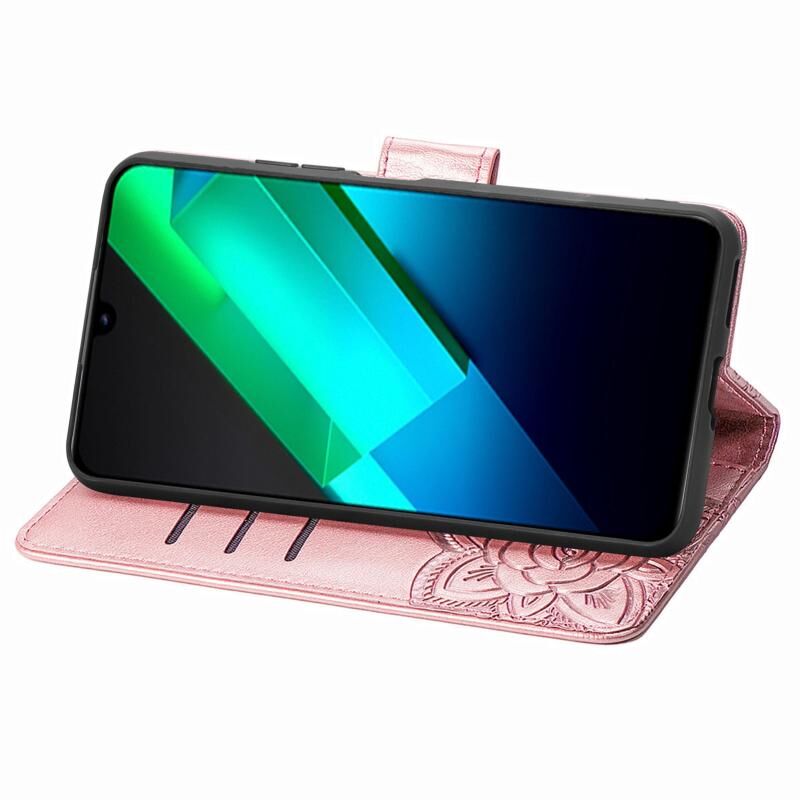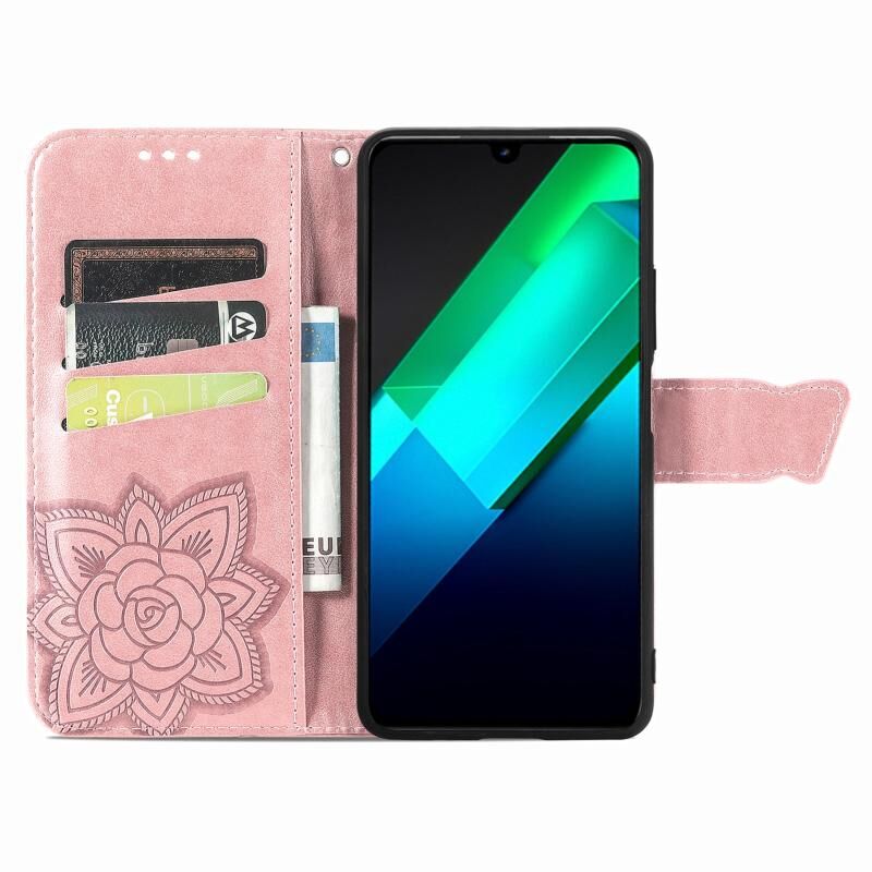 Θήκη τηλεφώνου από δέρμα με ανάγλυφο σχέδιο πεταλούδας και λουλουδιών για Infinix Note 12 G96 (Χρυσό Ρόδι)