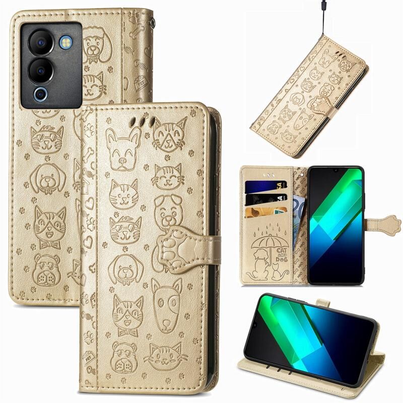 For Infinix Note 12 G96 Cat and Dog Embossed Phone Leather Phone Case(Gold)