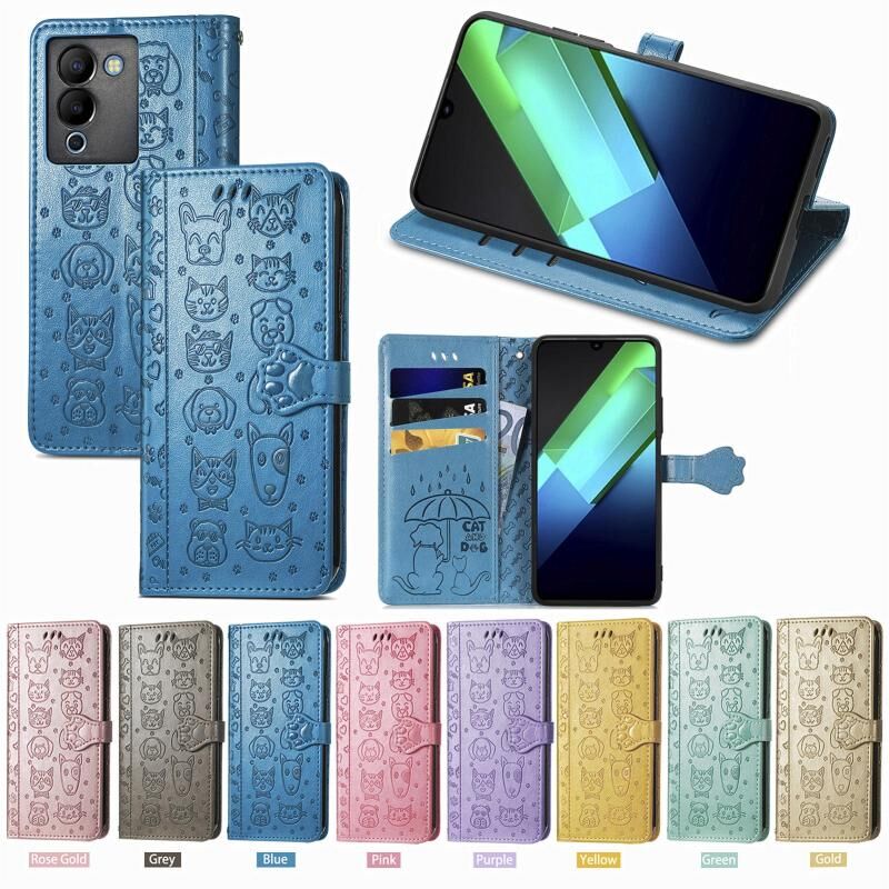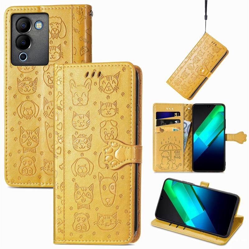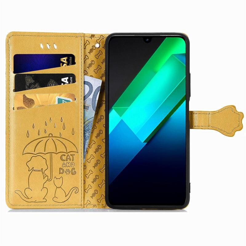 For Infinix Note 12 G96 Cat and Dog Embossed Phone Leather Phone Case(Yellow)