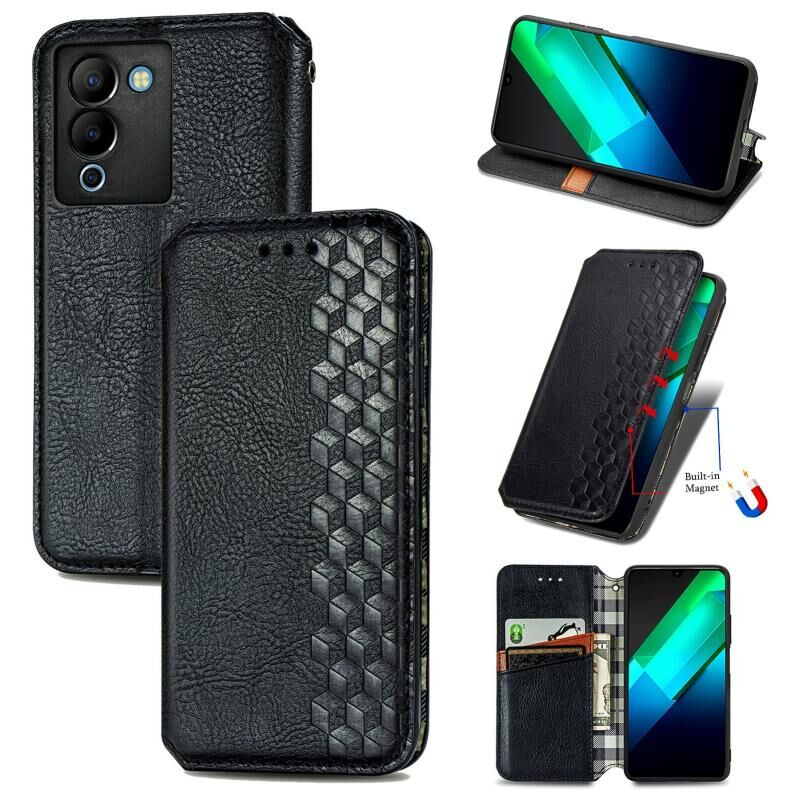 Για Infinix Note 12 G96 Cubic Grid πιεσμένο μαγνητική δερμάτινη θήκη τηλεφώνου (μαύρο)