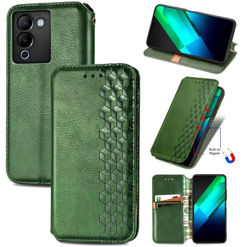 Για Infinix Note 12 G96 Cubic Grid πιεσμένο μαγνητική δερμάτινη θήκη τηλεφώνου (πράσινο)