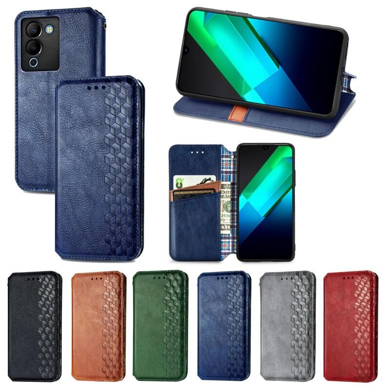 Για Infinix Note 12 G96 Cubic Grid Pressed μαγνητική δερμάτινη θήκη τηλεφώνου (κόκκινο)