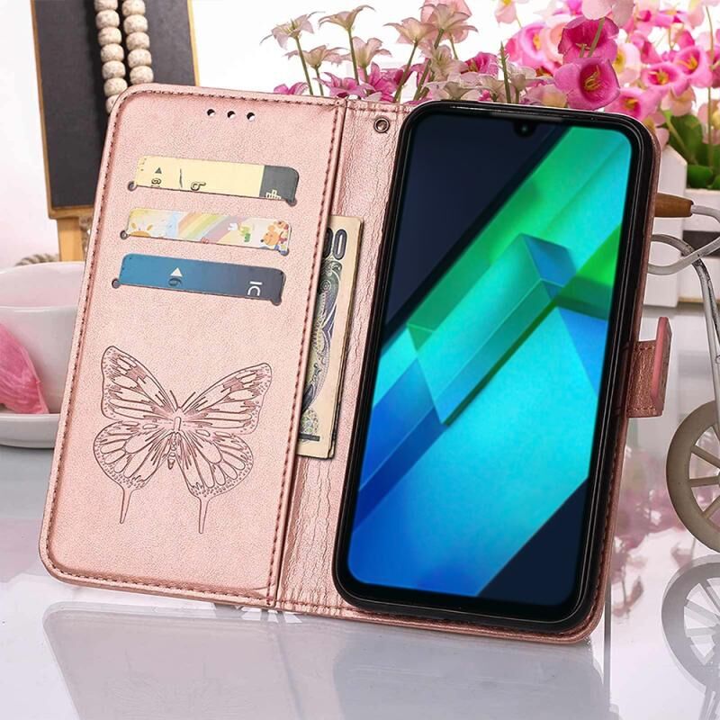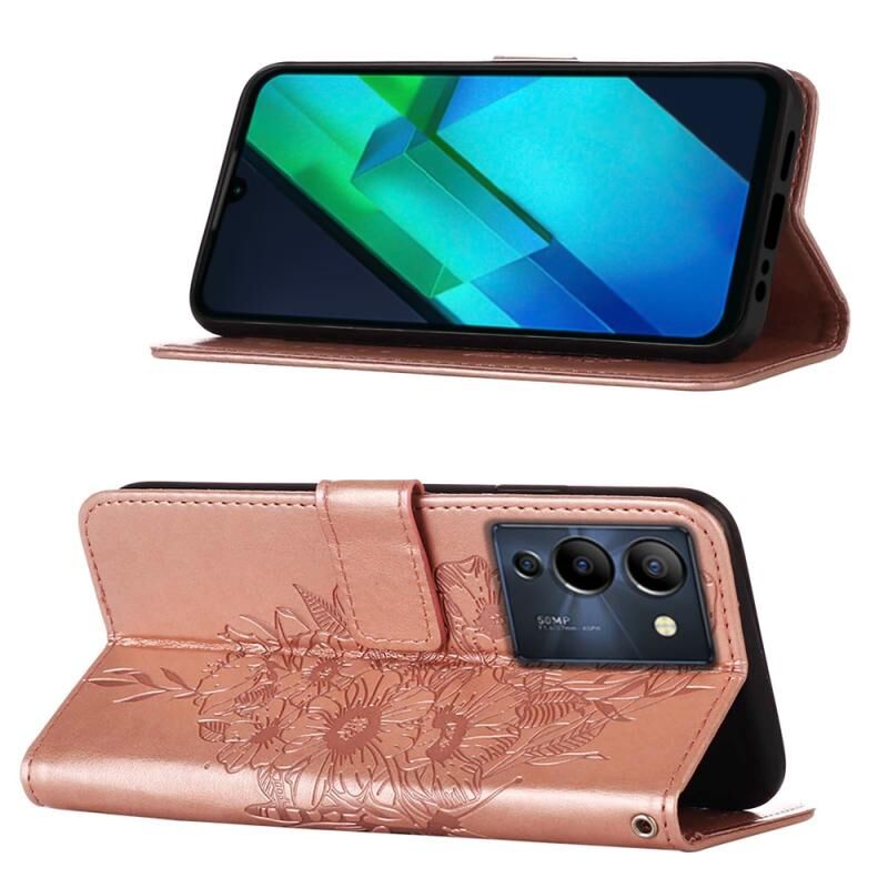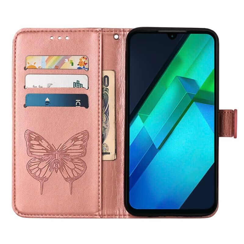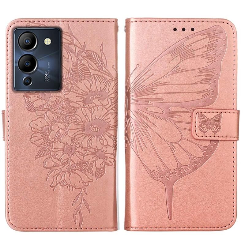 Θήκη τηλεφώνου από δέρμα με ανάγλυφο σχέδιο πεταλούδας και λειτουργία flip για Infinix Note 12 G96 (Μπλε)