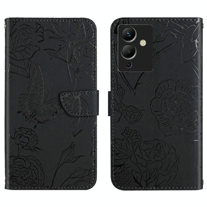 Για Infinix Σημείωση 12 G96 HT03 δέρμα αίσθηση πεταλούδα ανάγλυφο Flip υπόθεση τηλεφώνου δέρμα (μαύρο)