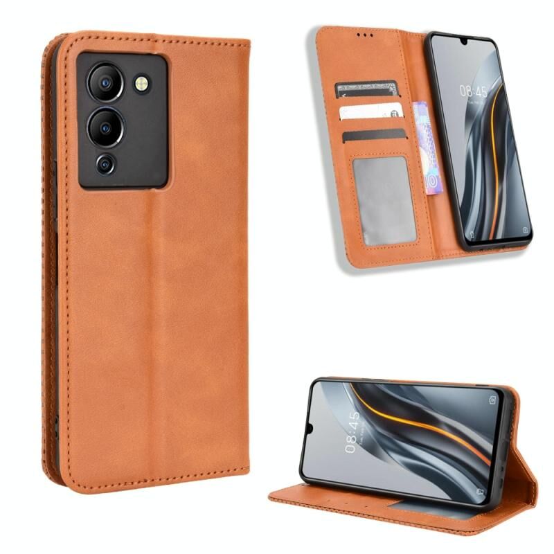 Για Infinix Σημείωση 12 G96 μαγνητική πόρπη ρετρό υφή δερμάτινη θήκη τηλεφώνου (καφέ)