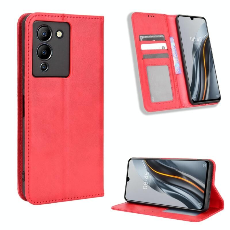 Για Infinix Σημείωση 12 G96 μαγνητική πόρπη ρετρό υφή δερμάτινη θήκη τηλεφώνου (κόκκινο)