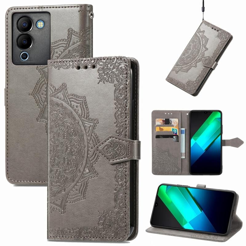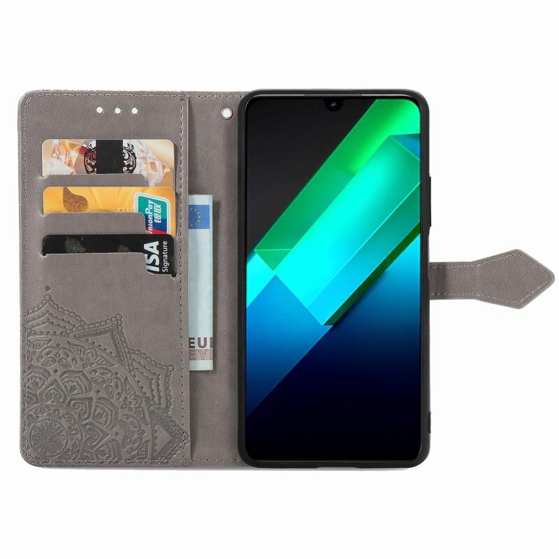 Για Infinix Σημείωση 12 G96 Mandala λουλούδι ανάγλυφο δέρμα τηλέφωνο υπόθεση (γκρι)