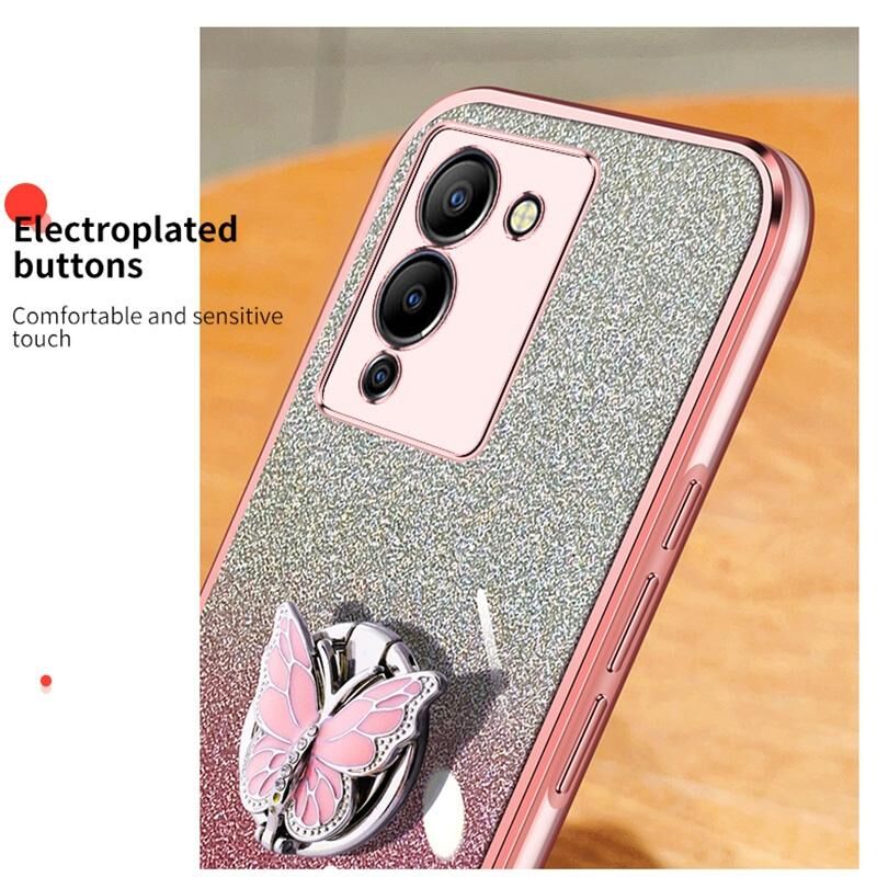Για Infinix Σημείωση 12 G96 Επιμεταλλωμένο διαβάθμιση Glitter πεταλούδα κάτοχος TPU τηλέφωνο υπόθεση (μαύρο)