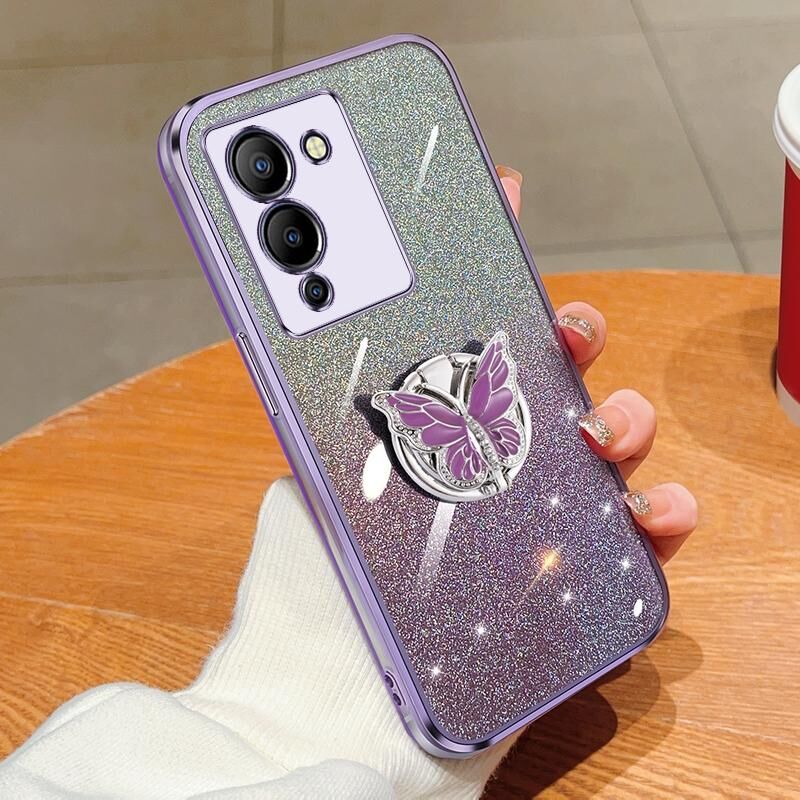 Για Infinix Σημείωση 12 G96 Επιμεταλλωμένο διαβάθμιση Glitter πεταλούδα κάτοχος TPU τηλέφωνο υπόθεση (μωβ)
