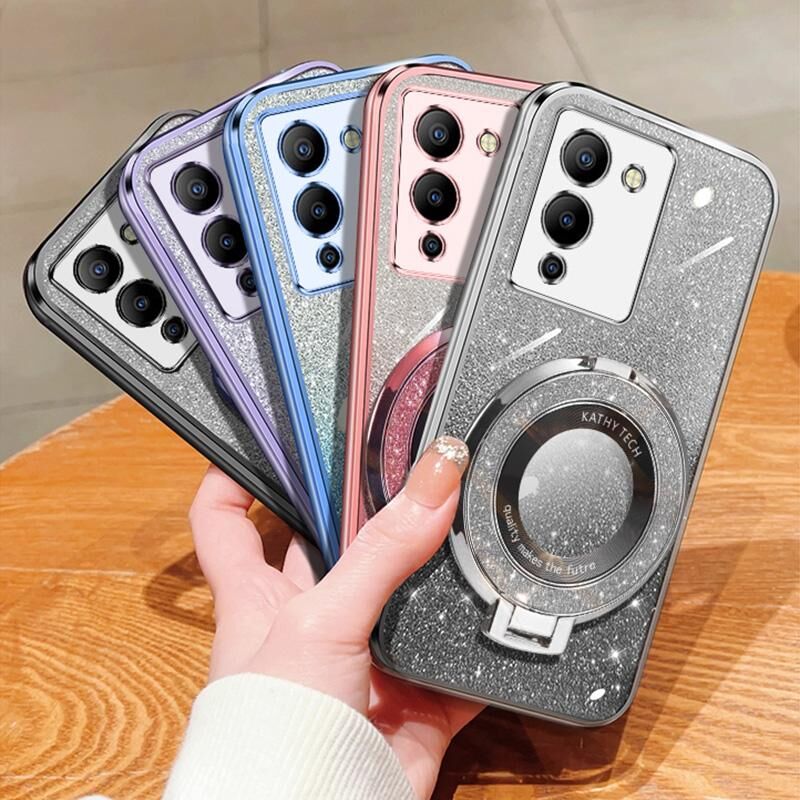 Για Infinix Σημείωση 12 G96 Επιμεταλλωμένο διαβάθμιση Glitter στρογγυλό κάτοχος TPU τηλέφωνο υπόθεση (Sierra Blue)