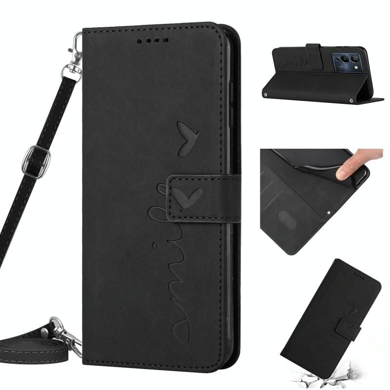 Για Infinix Σημείωση 12 G96 δέρμα αίσθηση καρδιά μοτίβο δερμάτινη θήκη τηλεφώνου με κορδόνι (μαύρο)