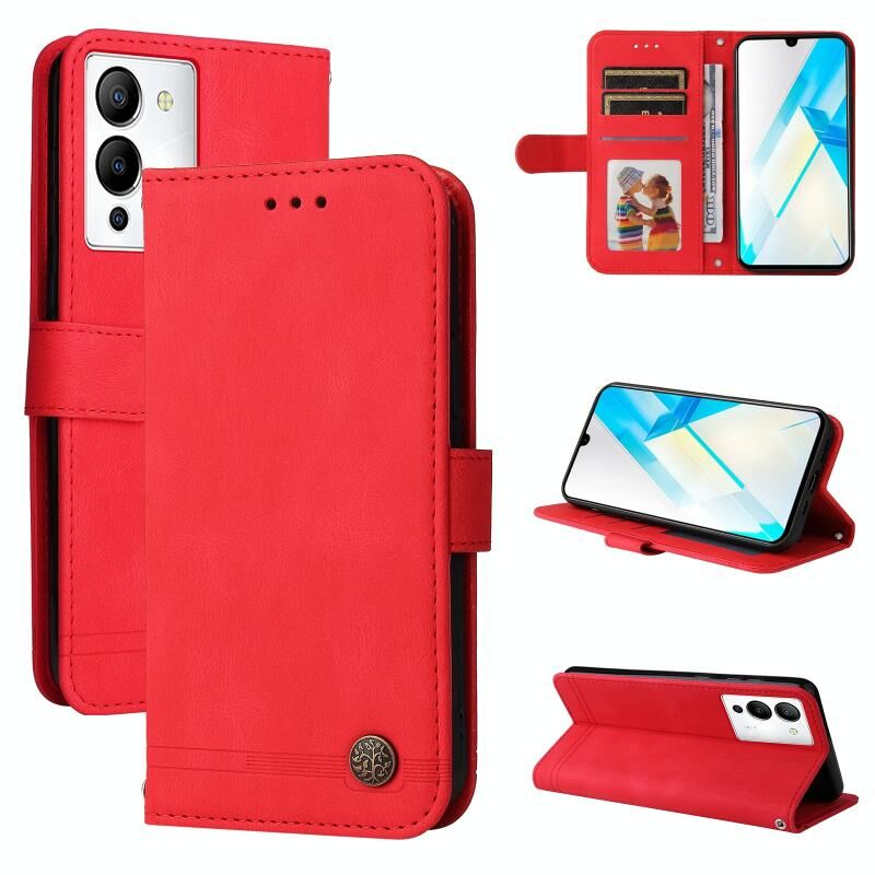 Θήκη τηλεφώνου δερμάτινη με μεταλλικά κουμπιά και αίσθηση δέρματος για Infinix Note 12 / G96 (Μαύρο)