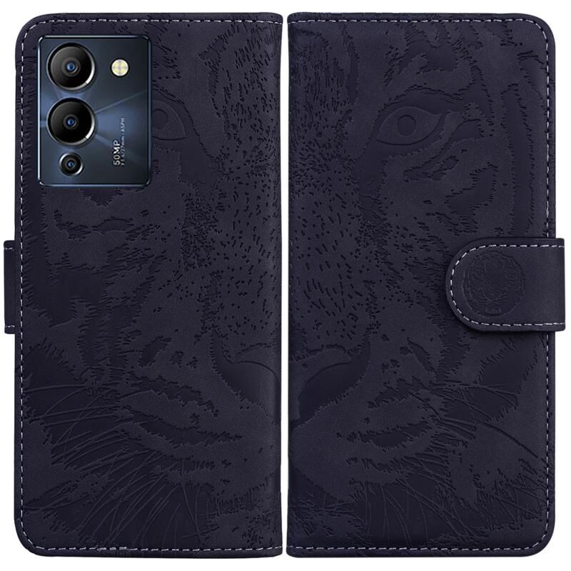 Θήκη τηλεφώνου δερμάτινη, οριζόντιας αναδίπλωσης, με ανάγλυφο σχέδιο τίγρης για Infinix Note 12 G96/X670 (Μαύρο)