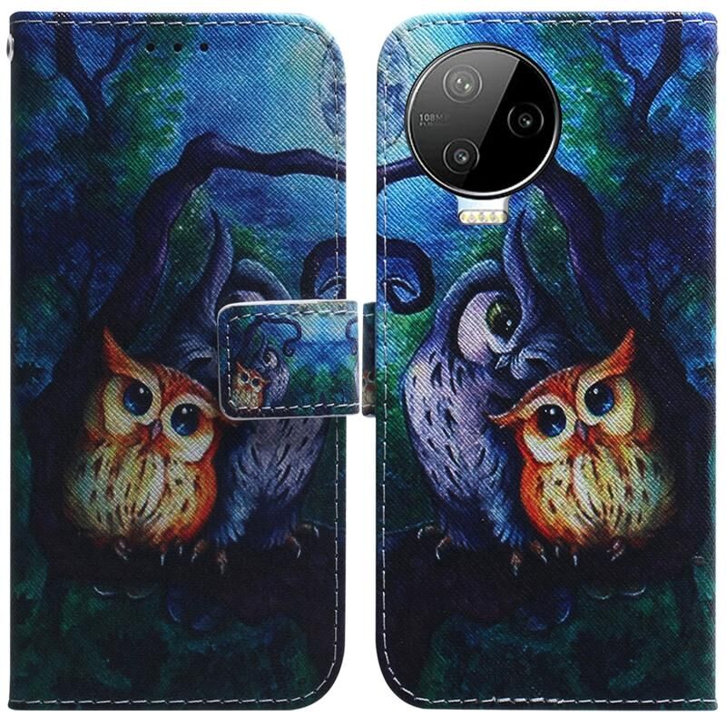 Θήκη τηλεφώνου δέρματος οριζόντιας αναδίπλωσης με έγχρωμη σχεδίαση για Infinix Note 12 Pro 4G (κουκουβάγια ζωγραφικής με λάδι)