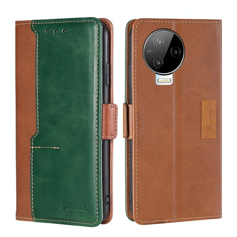 Για Infinix Σημείωση 12 Pro 4G αντίθεση χρώμα πλευρά πόρπη δερμάτινη θήκη τηλεφώνου υπόθεση (ανοιχτό καφέ + πράσινο)