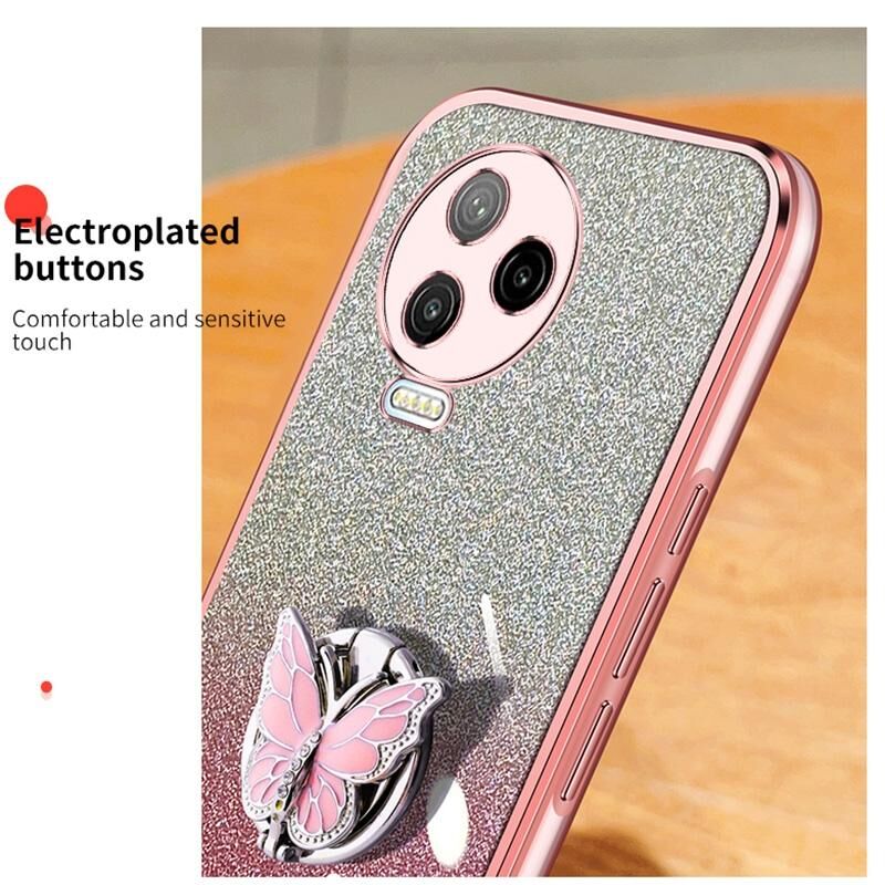 Για Infinix Σημείωση 12 Pro 4G επιμεταλλωμένο διαβάθμιση Glitter πεταλούδα κάτοχος TPU τηλέφωνο υπόθεση (μαύρο)