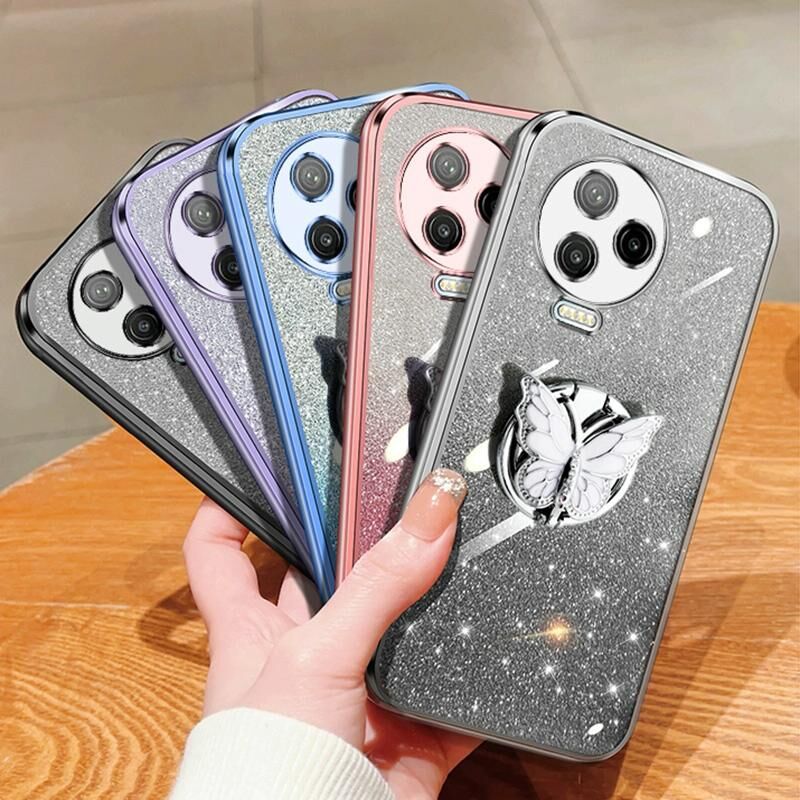 Για Infinix Σημείωση 12 Pro 4G επιμεταλλωμένο βαθμιδωτή Glitter πεταλούδα κάτοχος TPU τηλέφωνο υπόθεση (μωβ)