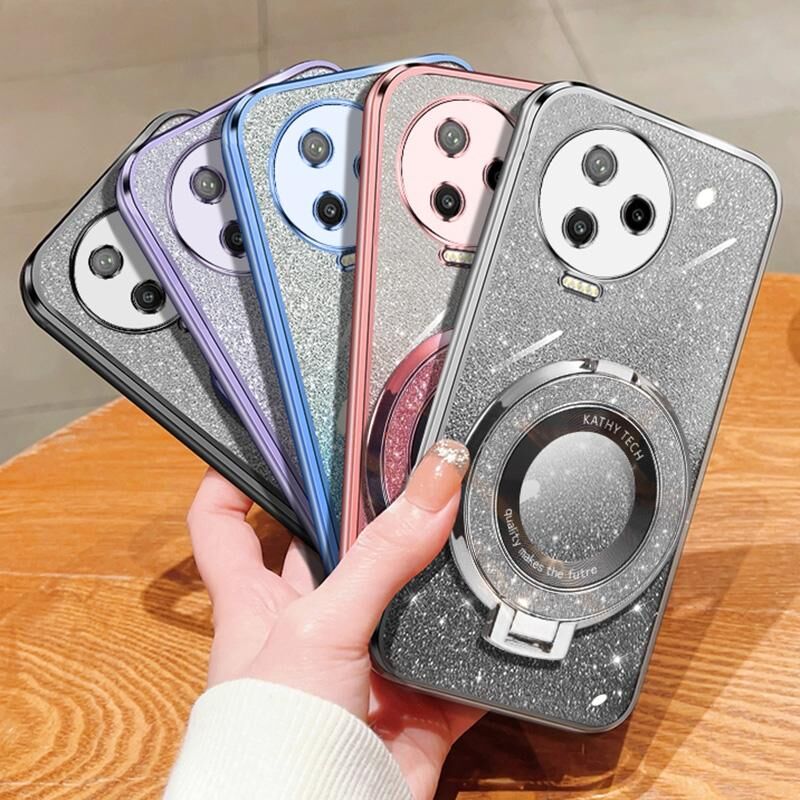 Για Infinix Σημείωση 12 Pro 4G επιμεταλλωμένο διαβάθμιση Glitter στρογγυλή κάτοχος TPU τηλέφωνο υπόθεση (μαύρο)