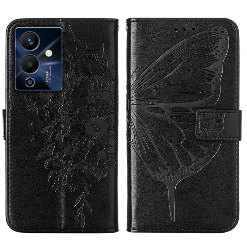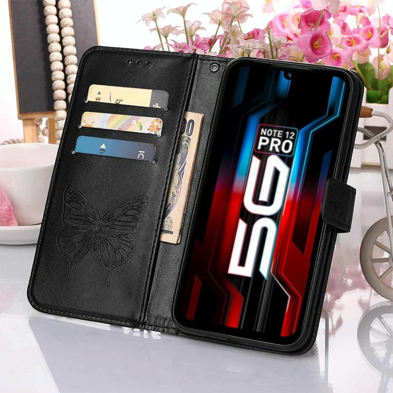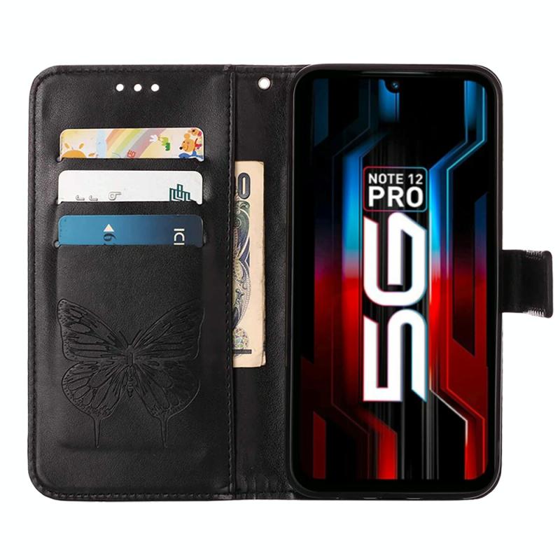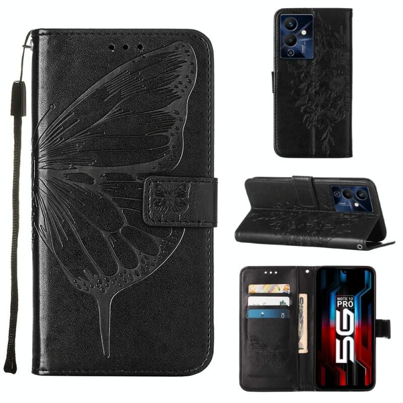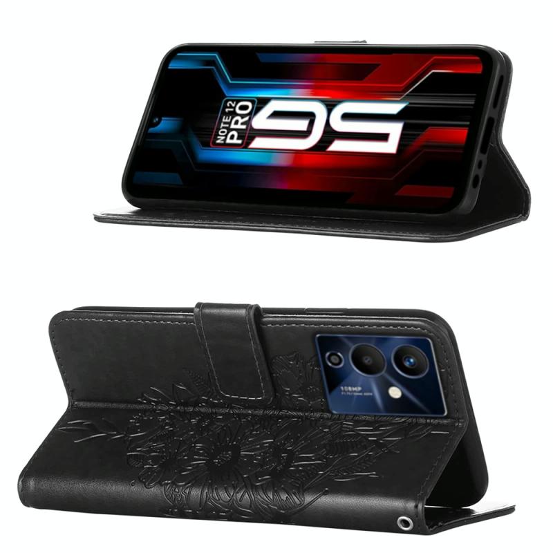 Θήκη τηλεφώνου από δέρμα με ανάγλυφο σχέδιο πεταλούδας και πτυσσόμενο μηχανισμό για Infinix Note 12 Pro 5G (Γκρι)