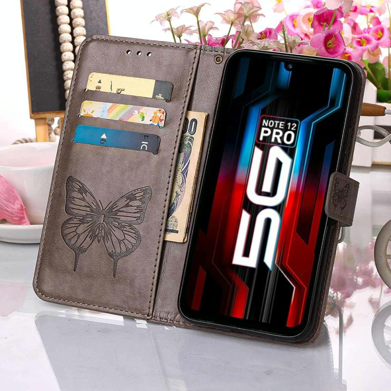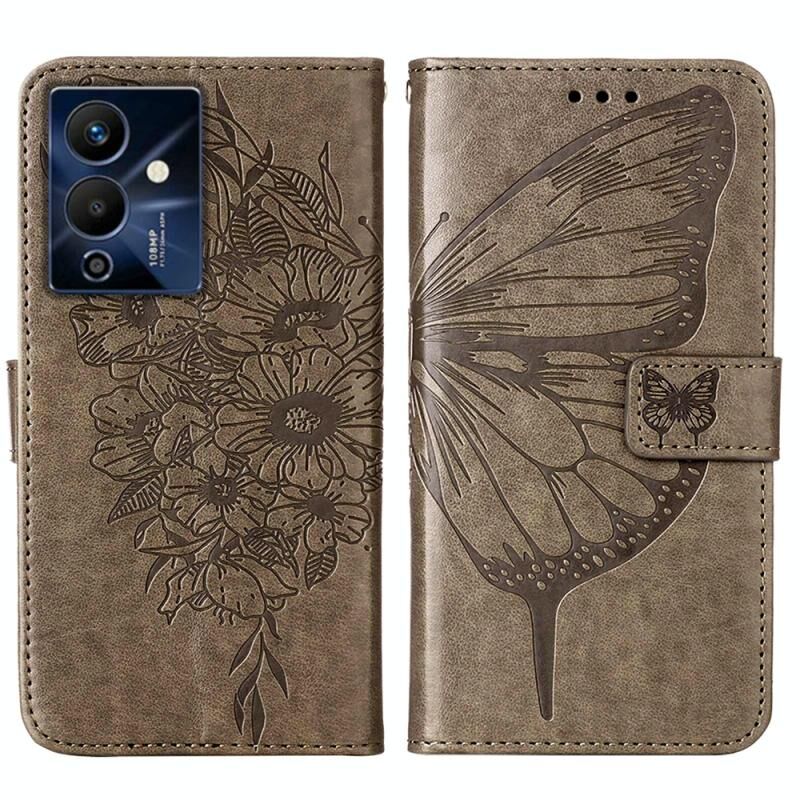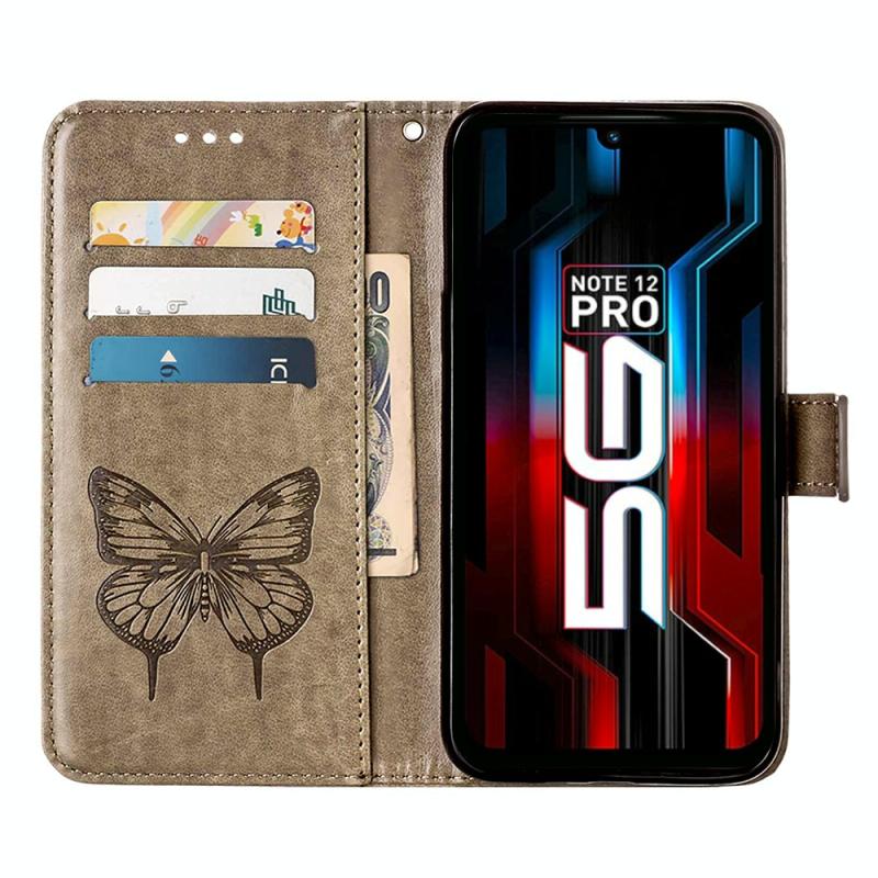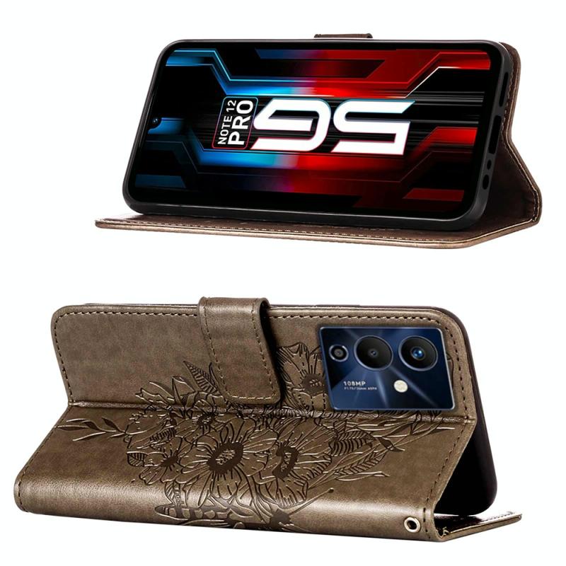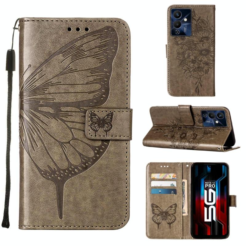 For Infinix Note 12 Pro 5G Embossed Butterfly Flip Leather Phone Case(Grey)