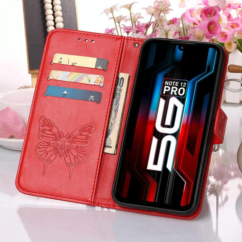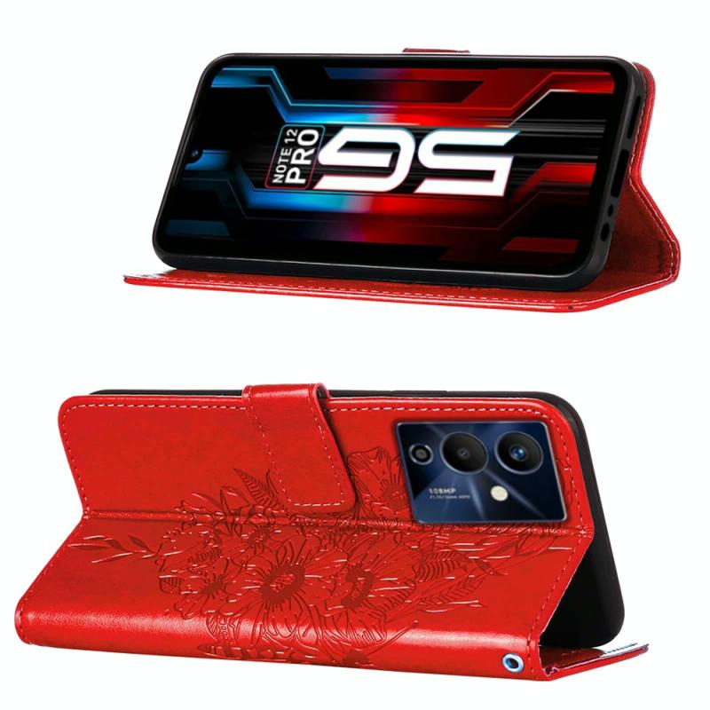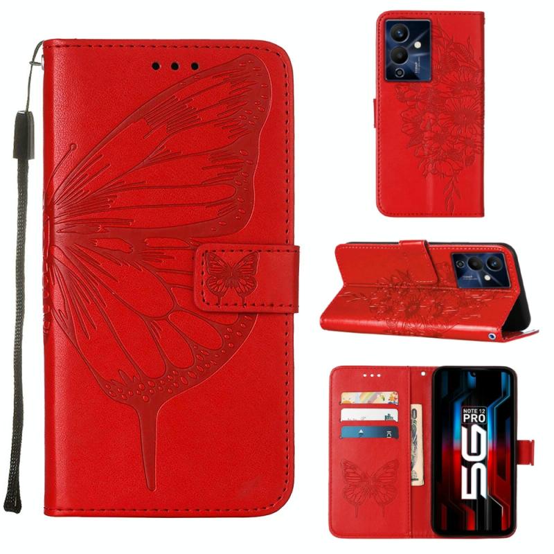 For Infinix Note 12 Pro 5G Embossed Butterfly Flip Leather Phone Case(Red)