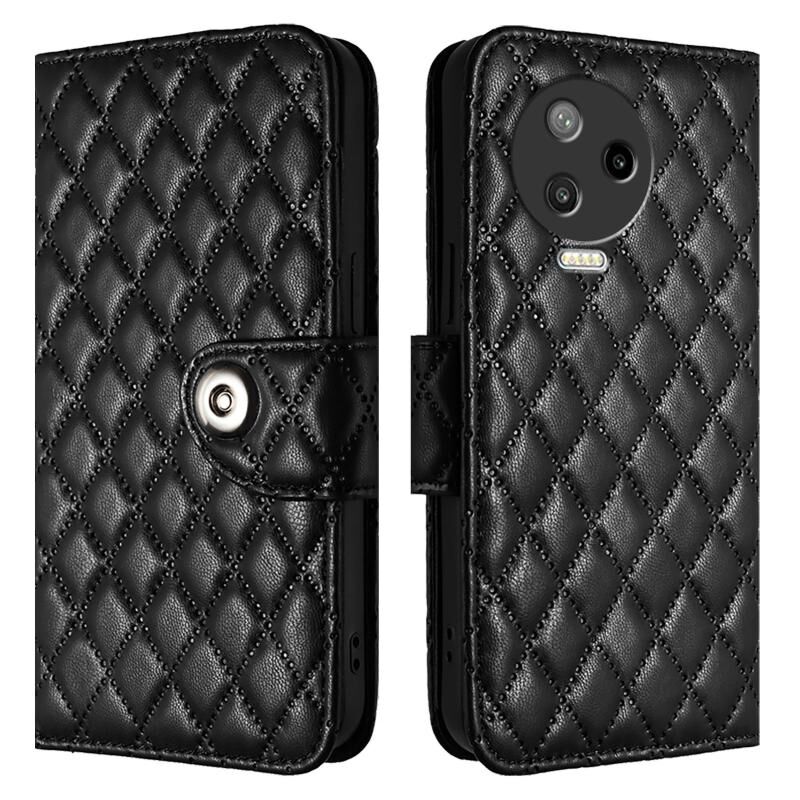 Για το Infinix Note 12 Pro / Note 12 2023 Rhombic Texture Flip δερμάτινη θήκη τηλεφώνου με κορδόνι (μαύρο)
