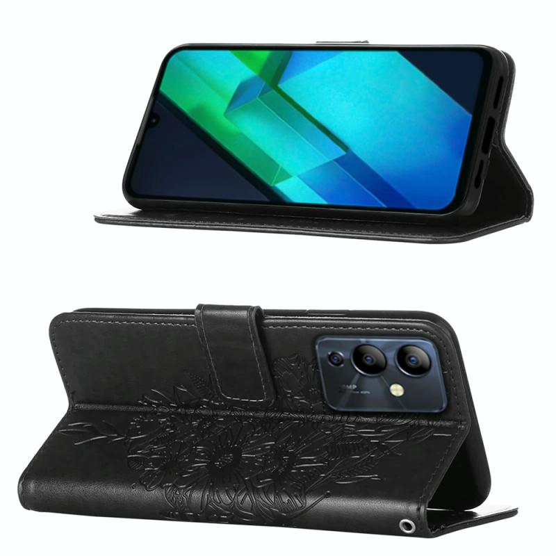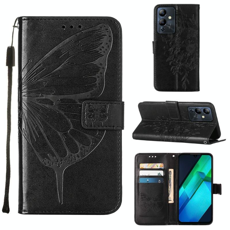 For Infinix Note 12i X6819 Embossed Butterfly Flip Leather Phone Case(Black)