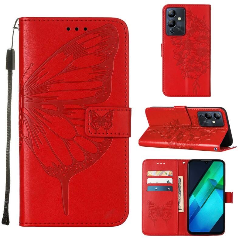 For Infinix Note 12i X6819 Embossed Butterfly Flip Leather Phone Case(Red)