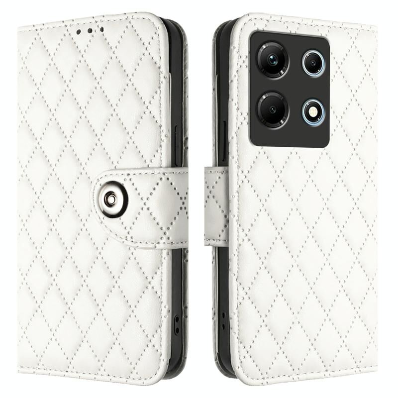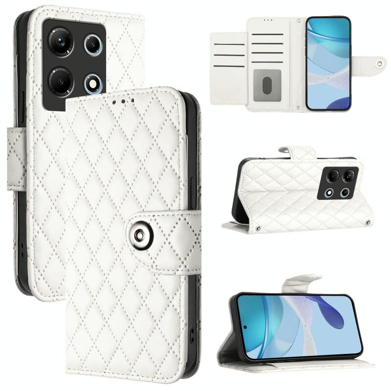 Για το Infinix Note 30 4G X6833B Rhombic Texture Flip δερμάτινη θήκη τηλεφώνου με κορδόνι (λευκό)