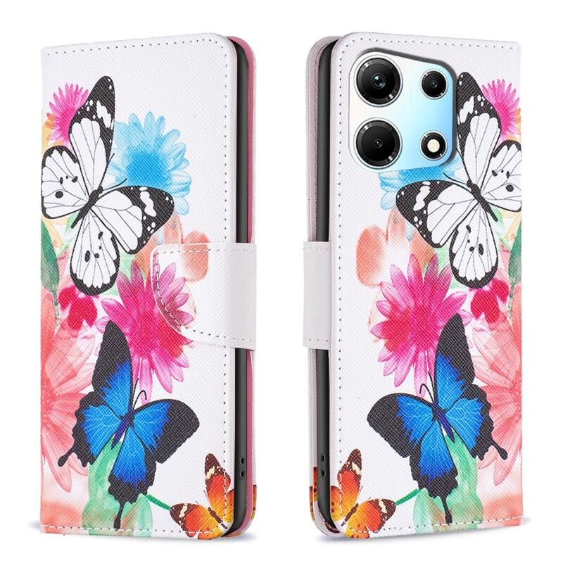 Θήκη τηλεφώνου από δέρμα με πολύχρωμο σχέδιο (πεταλούδες) για Infinix Note 30 5G.