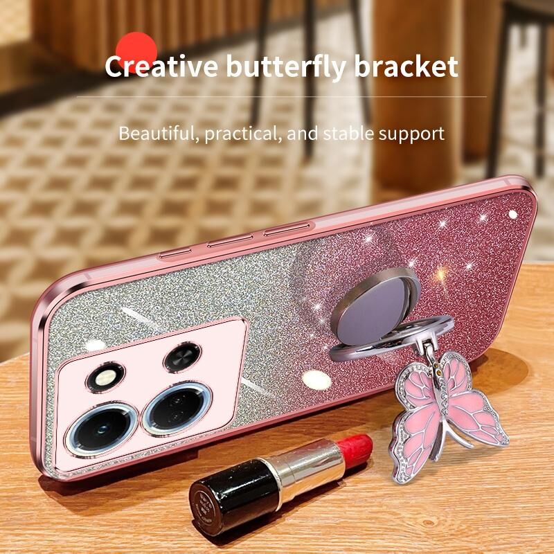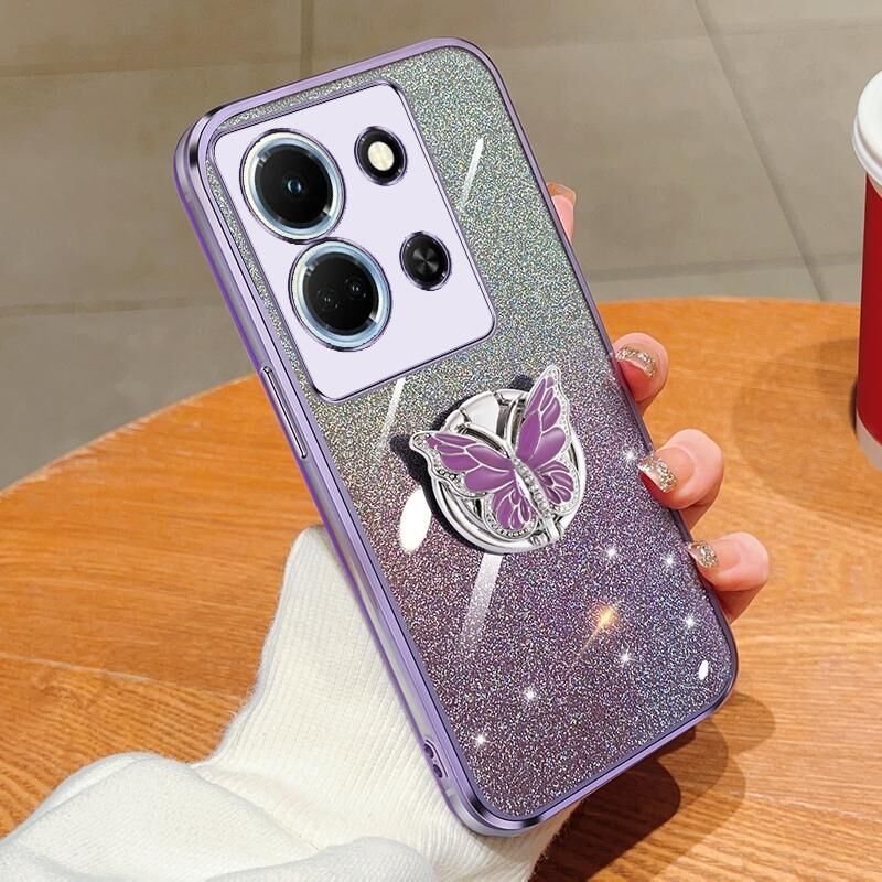 Για Infinix Σημείωση 30 5G Επιμεταλλωμένο διαβάθμιση Glitter πεταλούδα κάτοχος TPU τηλέφωνο υπόθεση (μωβ)
