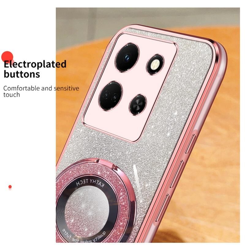 Για Infinix Σημείωση 30 5G επιμεταλλωμένο διαβάθμιση Glitter στρογγυλή κάτοχος TPU τηλέφωνο υπόθεση (μαύρο)