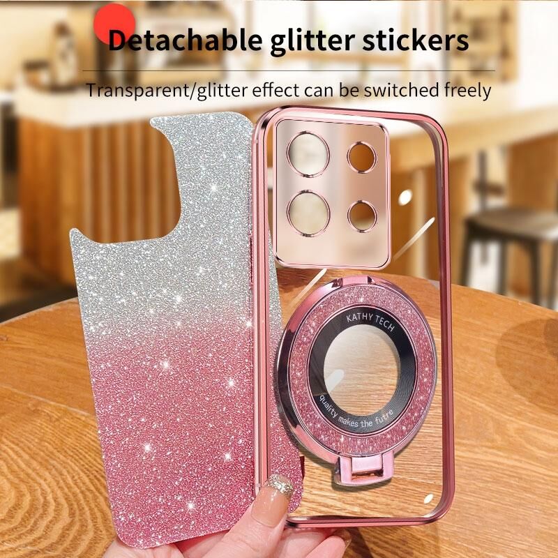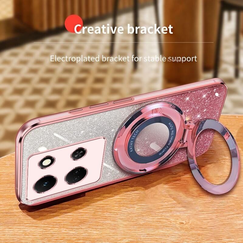 Για Infinix Σημείωση 30 5G επιμεταλλωμένο διαβάθμιση Glitter στρογγυλή κάτοχος TPU τηλέφωνο υπόθεση (ροζ)