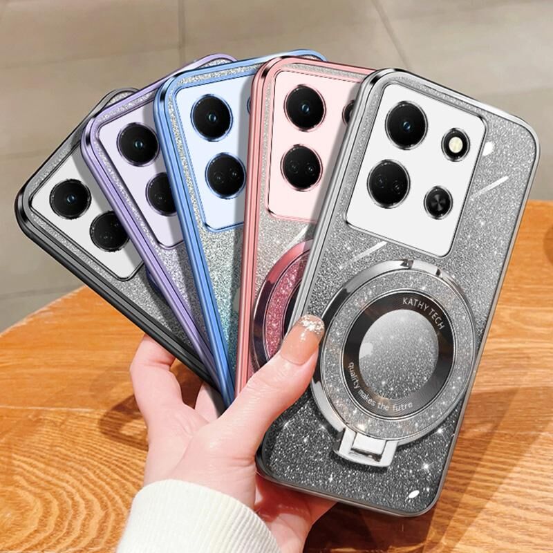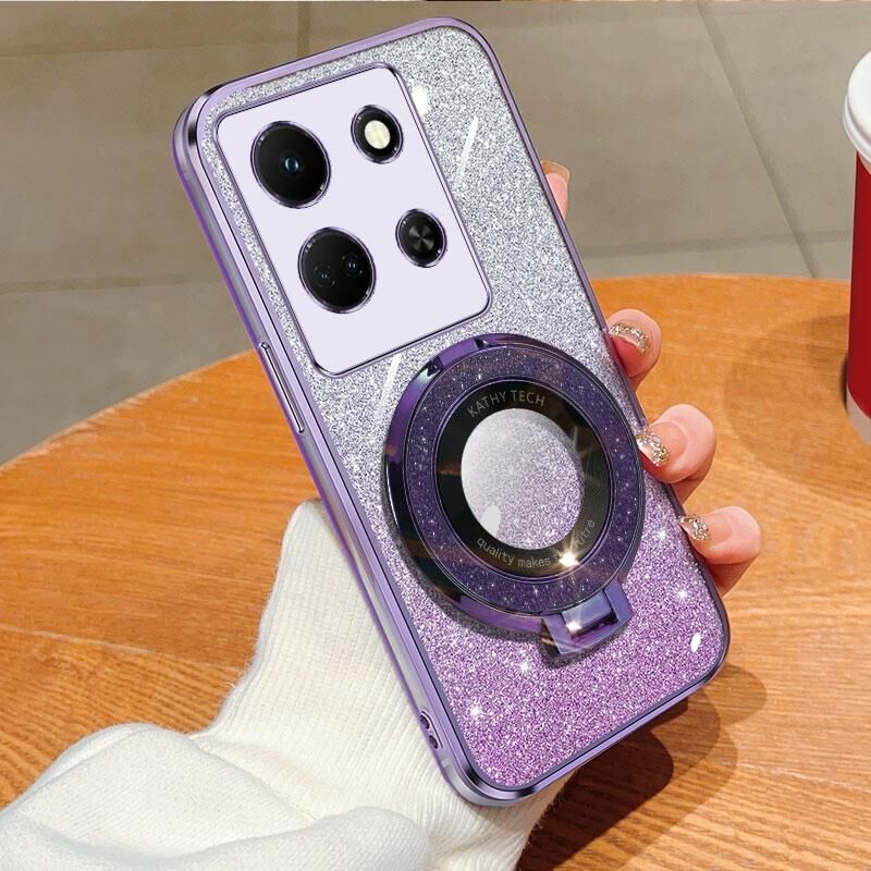 Για Infinix Σημείωση 30 5G επιμεταλλωμένο διαβάθμιση Glitter στρογγυλή κάτοχος TPU τηλέφωνο υπόθεση (μωβ)