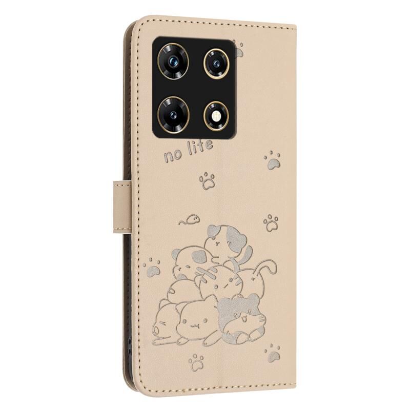 Θήκη δέρματος τηλεφώνου με ανάγλυφο γατάκι και λουρί για Infinix Note 30 Pro (Μπεζ)