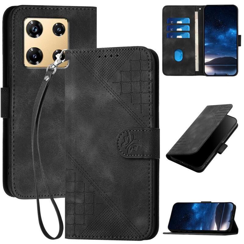 For Infinix Note 30 Pro Grid Butterfly Embossed Pattern Leather Phone Case with Lanyard(Black)