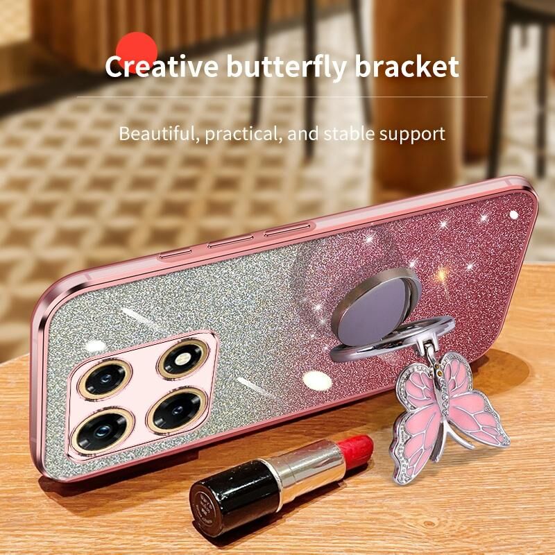 Για Infinix Σημείωση 30 Pro Επιμεταλλωμένο διαβάθμιση Glitter πεταλούδα κάτοχος TPU τηλέφωνο υπόθεση (μαύρο)