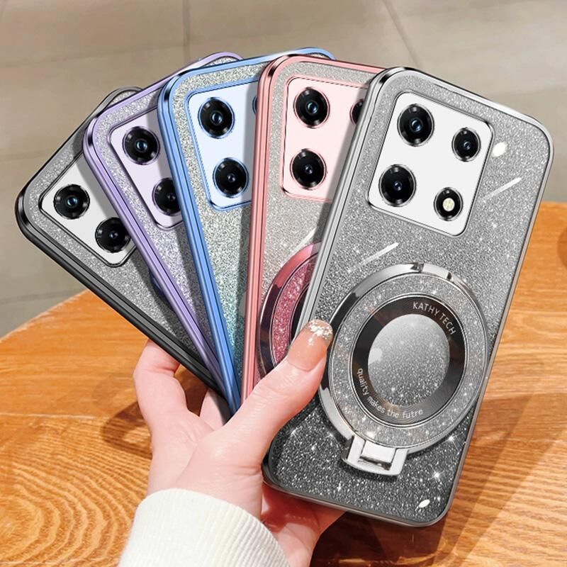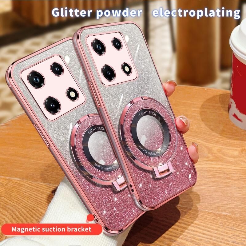 Για Infinix Σημείωση 30 Pro Επιμεταλλωμένο διαβάθμιση Glitter στρογγυλή κάτοχος TPU τηλέφωνο υπόθεση (ροζ)