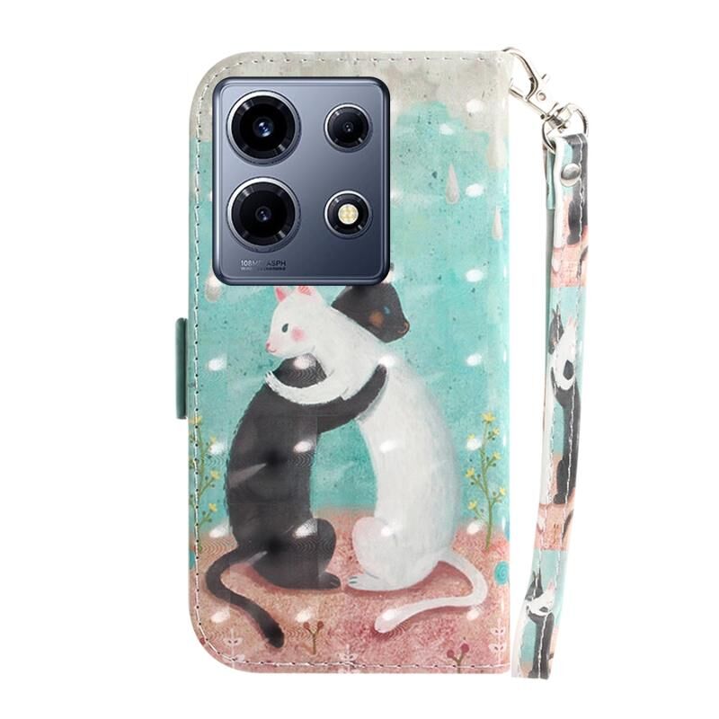 Θήκη τηλεφώνου από δέρμα με οριζόντιο άνοιγμα και τρισδιάστατα χρώματα για Infinix Note 30 VIP (Μαύρη Λευκή Γάτα)