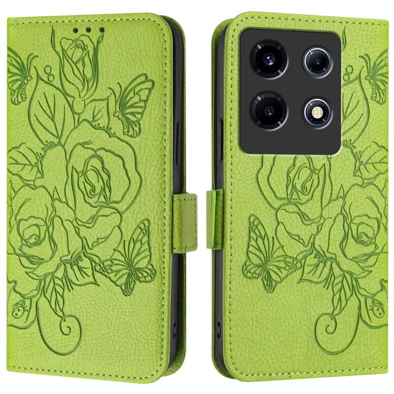 Για Infinix Σημείωση 30 VIP ανάγλυφο Rose RFID Anti-theft δερμάτινη θήκη τηλεφώνου (Πράσινο)