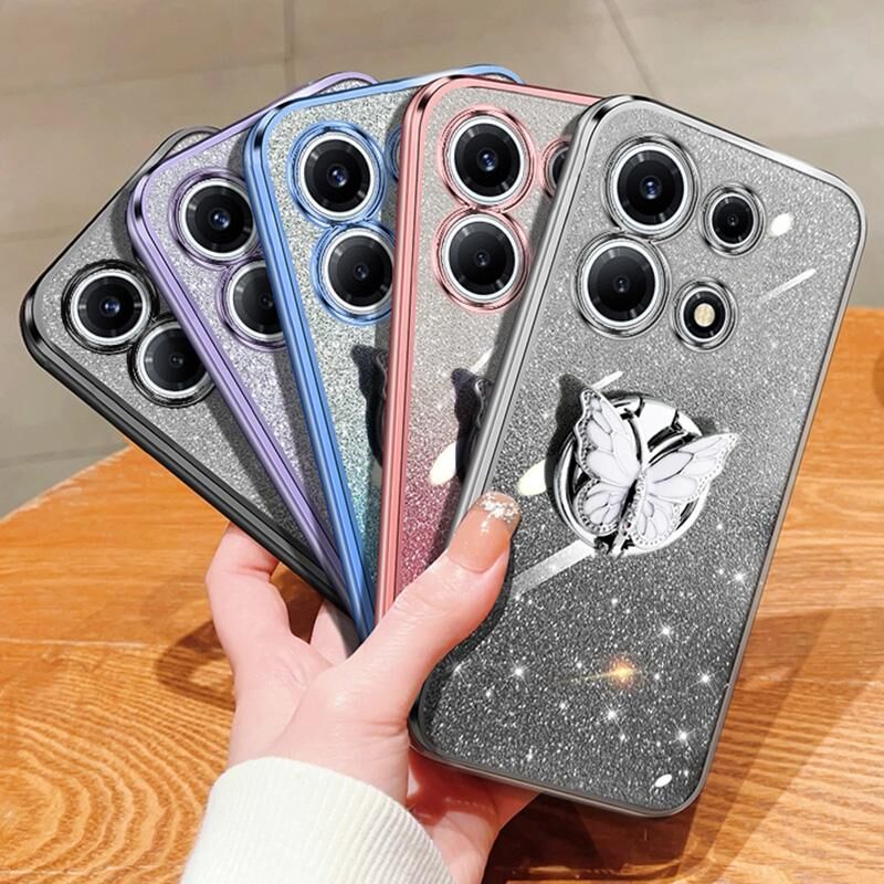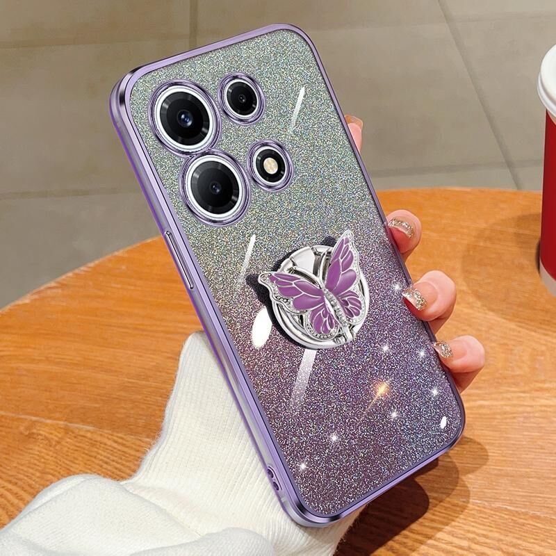 Για Infinix Σημείωση 30 VIP επιμεταλλωμένο διαβάθμιση Glitter πεταλούδα κάτοχος TPU τηλέφωνο υπόθεση (μωβ)