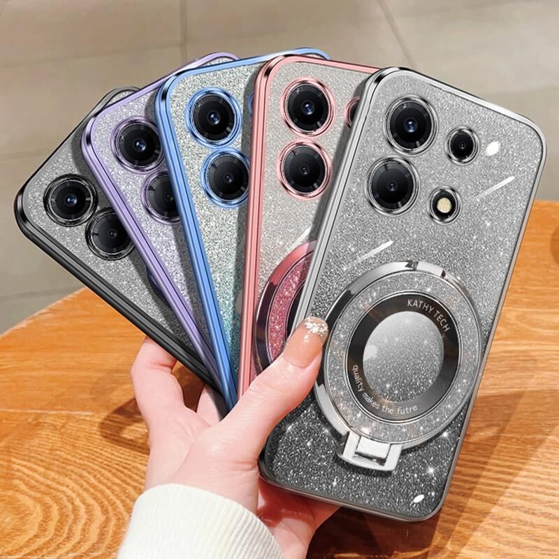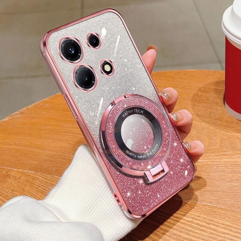 Για Infinix Σημείωση 30 VIP επιμεταλλωμένο διαβάθμιση Glitter Γύρος κάτοχος TPU τηλέφωνο υπόθεση (ροζ)